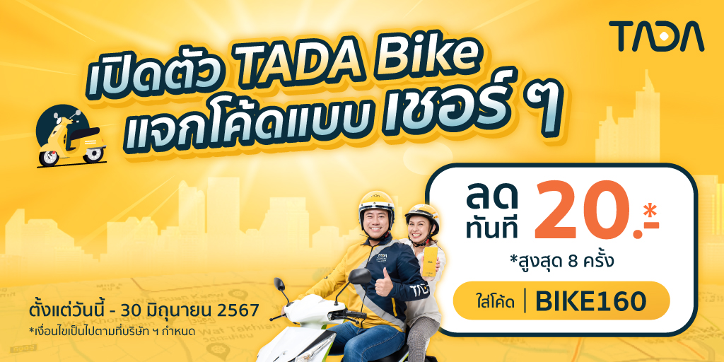TADA เปิดตัวบริการเรียกรถจักรยานยนต์ใหม่ เพิ่มทางเลือกด้านการเดินทางสำหรับล...