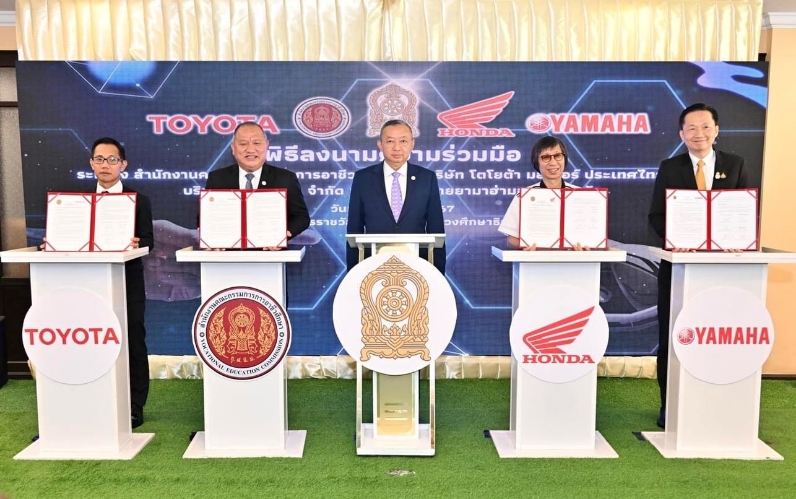 พิธีลงนามความร่วมมือสนับสนุนและส่งเสริม การจัดการอาชีวศึกษาระบบทวิภาคีเพื่อ...