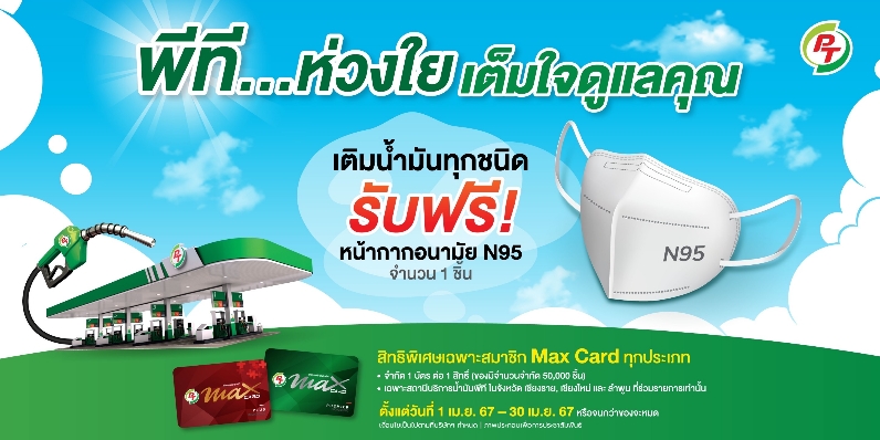 พีที…ห่วงใย เต็มใจดูแลคุณเติมน้ำมันทุกชนิด รับฟรี! หน้ากากอนามัย N95...