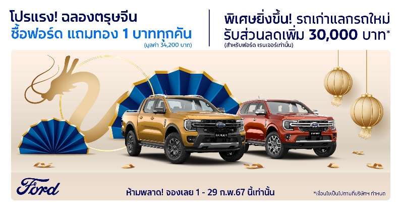ฟอร์ดอัดเพิ่มโปรแรง นาทีทองต้องจองฟอร์ด ซื้อรถฟอร์ด-แจกทอง 1 บาททุกคันตลอดเ...
