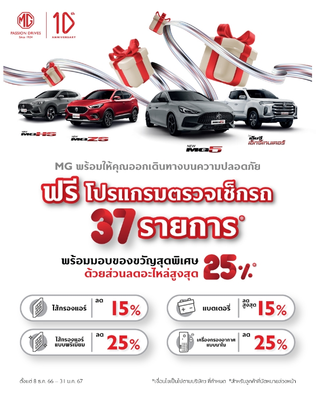 เอ็มจี ร่วมรณรงค์ขับขี่ปลอดภัยช่วงปีใหม่ ปล่อยแคมเปญตรวจเช็กรถฟรีก่อนเดินทา...