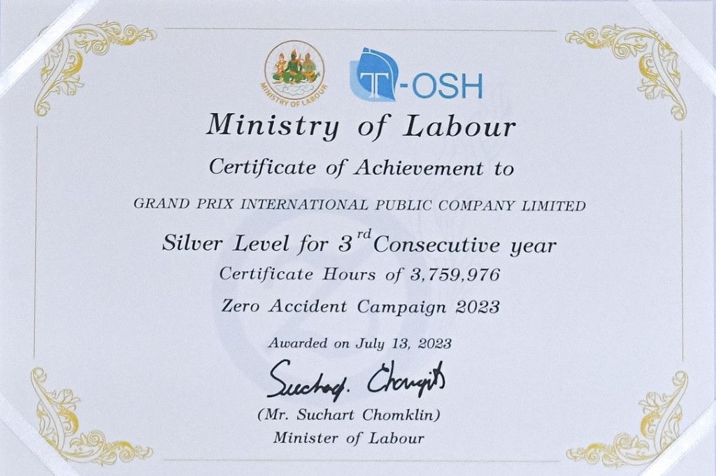 กรังด์ปรีซ์ฯ รับรางวัลประกาศเกียรติคุณ ระดับเงิน ในกิจกรรม “การรณรงค์ลดอุบ...