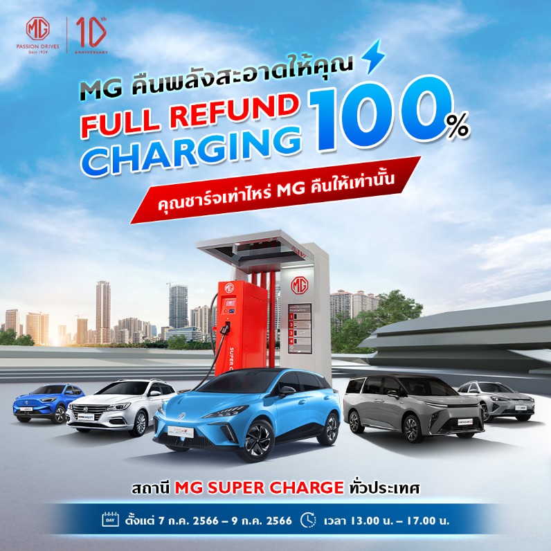 เอ็มจี ต่อแคมเปญ เติมพลังงานสะอาดให้คุณ ชาร์จเท่าไหร่ เอ็มจี คืนให้เท่านั้น...