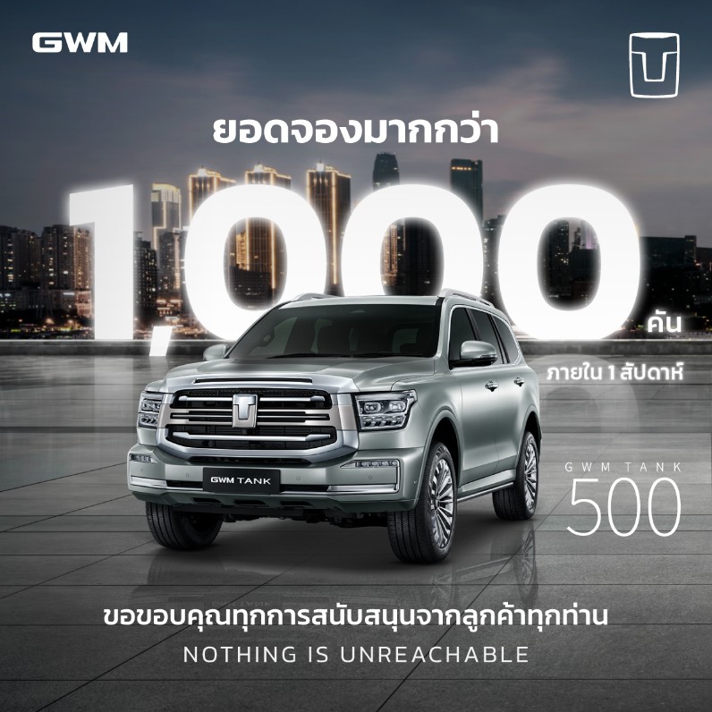 All New GWM TANK 500 Hybrid SUV ร้อนแรงแบบฉุดไม่อยู่ ด้วยยอดจองสิทธิ์เพื่อซ...
