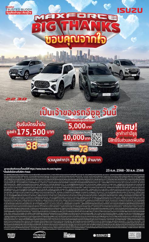 แคมเพจ์นใหญ่ส่งท้ายปี “MAXFORCE BIG THANKS ขอบคุณจากใจ”...