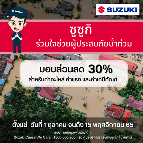 “ซูซูกิ”มอบส่วนลด 30% แก่ผู้ใช้รถถูกท่วมทั่วประเทศ...