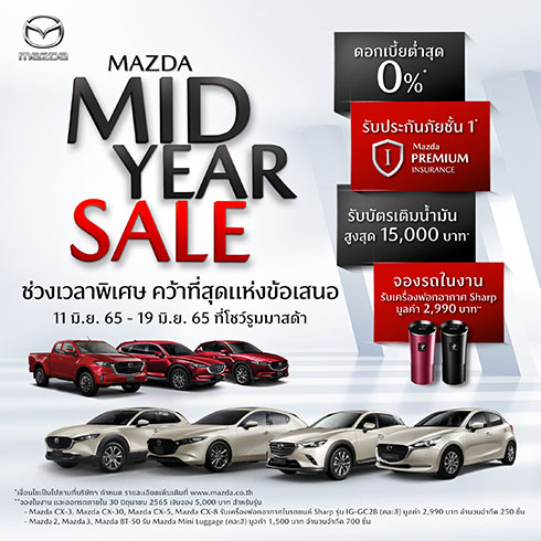 มาสด้าฉลองโต7%แจกน้ำมัน 15,000,ดอก 0%ฟรีประกัน...