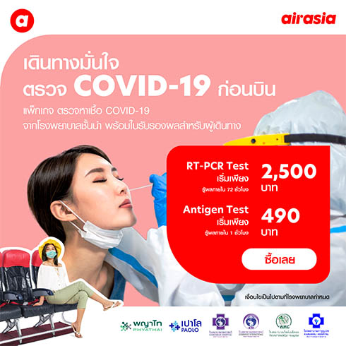 แอร์เอเชียช่วยลดราคาชุดตรวจโควิดล่วงหน้าก่อนขึ้นเครื่อง...