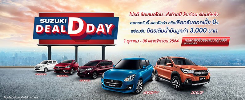 “SUZUKI DEAL D DAY” ดอก,ดาวน์0%ผ่อน1,999บาท...