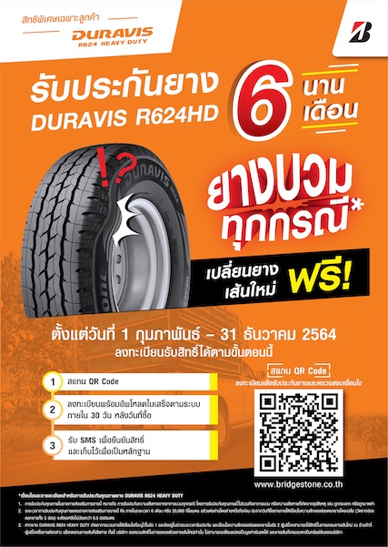 บริดจสโตนมอบความอุ่นใจให้ลูกค้า รับประกันยาง นานถึง 6 เดือน...