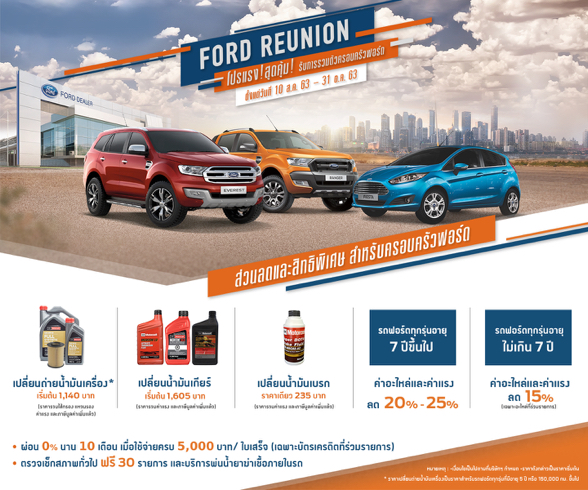 ฟอร์ดจัดโปรแรงสุดคุ้ม ‘ฟอร์ด รียูเนียน’ ลดค่าอะไหล่ ค่าแรงสูงสุด 25%...