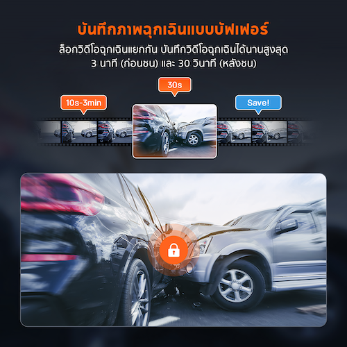 และหลังเหตุการณ์อีก 30 วินาที ด้วยช่วงเวลาการบันทึกที่ครอบคลุมมากขึ้น ผู้ใช้งานจึงสามารถเก็บบันทึกเหตุการณ์ได้อย่างครบถ้วน ไม่ว่าจะเป็นการเปลี่ยนเลนกะทันหัน การเบรกอย่างรุนแรง