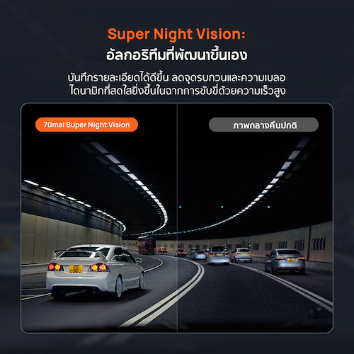 สำหรับการขับขี่ในเวลากลางคืน กล้องติดรถยนต์ 4K A800SE ยังคงมอบประสิทธิภาพที่ยอดเยี่ยมด้วยเทคโนโลยี Super Night Vision ที่ขับเคลื่อนด้วยอัลกอริธึมประมวลผลภาพ