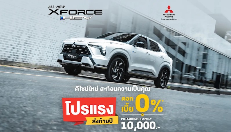 "โปรแรง ส่งท้ายปี" สำหรับลูกค้าที่ซื้อรถยนต์ ออล-นิว มิตซูบิชิ เอ็กซ์ฟอร์ส เอชอีวี ตั้งแต่วันที่ 1พฤศจิกายน 2568 - 11 ธันวาคม 2568 เลือกรับดอกเบี้ยพิเศษ 0% นาน 48 เดือน