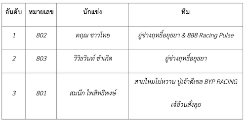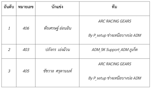 แชมป์ประจำปีคือ พีรเศรษฐ์ อ่อนอิน หมายเลข 406 จากทีม ARC RACING GEARS By P_setup ช่างเหนือบางบ่อ ADM
