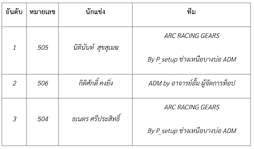 แชมป์ประจำปีคือ นิตินันท์ สุขสุเมฆ หมายเลข 505 จากทีม ARC RACING GEARS By P_setup ช่างเหนือบางบ่อ ADM
