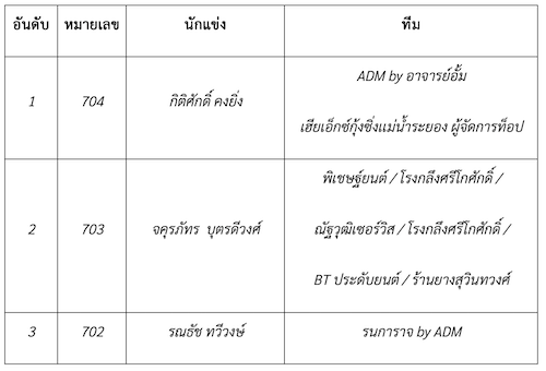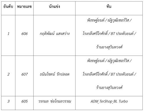 ผลการแข่งขันประเภท Amateur Race: รุ่นนักแข่งมือสมัครเล่น