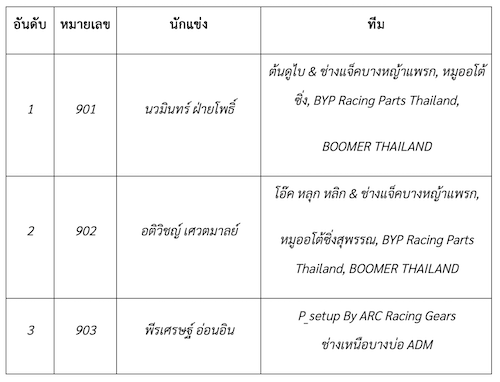 ผลการแข่งขันประเภท Pro Race: รุ่นนักแข่งมืออาชีพ